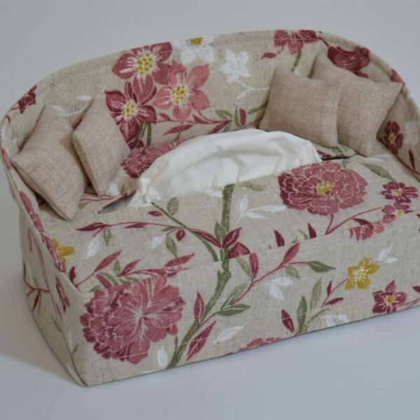 Zsebkendőtartó rózsaszín virágos mintával