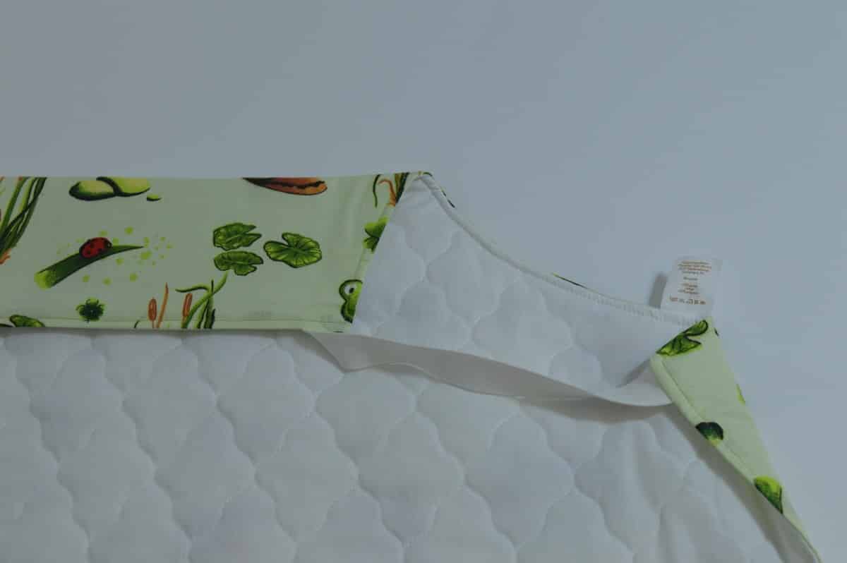 Az ovis lepedő mérete 140x70cm. 100% pamut összetételű vászonból készült, ami steppelt vatelinnel van bélelve. A sarkokba gumiszalagot varrtunk a könnyebb rögzíthetőség érdekében. Mosógépben 40 fokon mosható.
